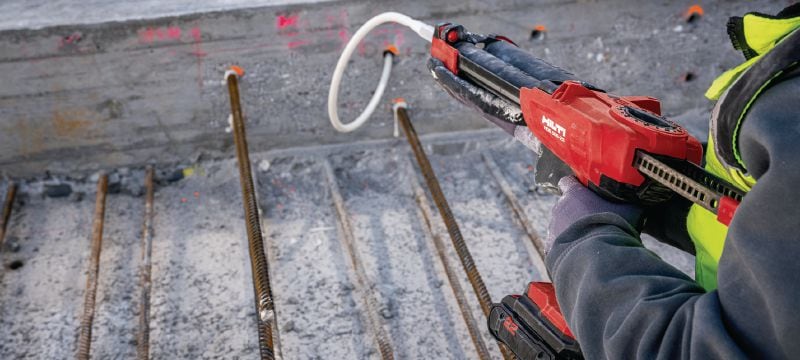 - Plus facile à manipuler – Cette cheville chimique à base de ciment injectable peut être utilisée avec votre pince d'injection pour scellement chimique Hilti actuelle. Elle permet de réduire les pertes et d'optimiser votre temps, en particulier en l'associant aux pinces d'injection sur batterie HDE Hilti