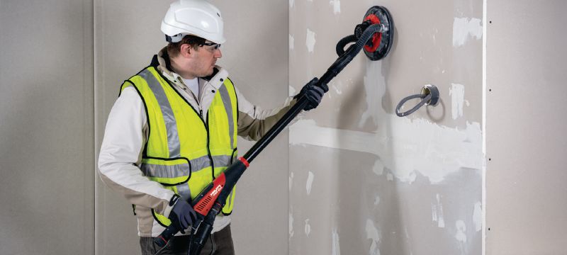 - Finition des plafonds et murs en cloison sèche – la perche d'extension (fournie) de la ponceuse girafe vous permet souvent d'éviter l'utilisation d'échelles ou d'échafaudages