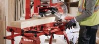 - Précision de découpe – l'onglet (≤ 60° à droite, ≤ 52° à gauche) et le biseau (jusqu’à 48°) se règlent dans les deux sens pour des coupes lisses et des coupes droites et précises tout au long de la durée de vie de la scie