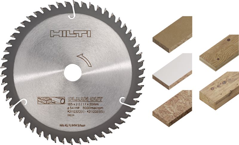 - Corps de lame robuste et pointes en carbure de tungstène – favorisent une durée de vie de la lame plus longue tout en réduisant l'éclatement et l'arrachement lors de la coupe de bois de construction
